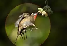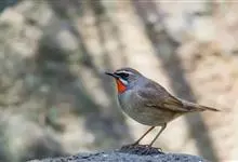红尾歌鸲:体长13-15厘米。上体橄榄褐色。尾羽棕栗色,眼先和颊黄褐色,眼周淡黄褐色。下体颏、喉污灰白色,微沾皮黄色,胸部具橄榄色扇贝形纹,两胁橄榄灰白色,腹部和尾下覆羽与颏、喉同。尾部棕色。…全部>>