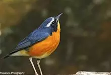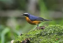 栗腹歌鸲是鹟科、歌鸲属小型鸟类,体长12-14厘米。雄鸟前额和头侧黑色,一条长而显著的白色眉纹在黑色的头部极为醒目,头顶至尾等其余上体灰蓝色,下体栗棕色或栗色。雌鸟上体橄榄褐色,下体白色沾赭棕色。…全部>>
