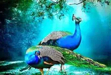 蓝孔雀,是鸡形目雉科孔雀属中的一种鸟。蓝孔雀是鸡类中的“巨人”,雄鸟和雌鸟的羽色有差,雄鸟头上具冠羽,头、颈和胸部均为蓝色,尾羽并不长,构成尾屏的尾上覆羽可达身长的2倍,平时合拢托在身后,…全部>>
