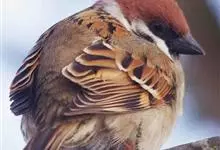 家麻雀:共有13个亚种。是小型鸟类,体长14-16厘米。背栗红色具黑色纵纹,两侧具皮黄色纵纹;颏、喉和上胸黑色,脸颊白色,其余下体白色,翅上具白色带斑。雄鸟与树麻雀的区别在顶冠及尾上覆羽灰色,耳无黑…全部>>