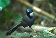 黑喉噪鹛是噪鹛属鸟类。体长24-29厘米,体重75-90克。雄鸟前额、眼先、眼周和眼后纹以及颊、须和喉黑色;黑色前额和蓝灰色头顶之间有道白色细斑;颈侧具椭圆形白斑,…全部>>