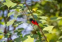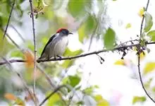 朱背啄花鸟:体重6-8克,体长81-97毫米。是一种小型的黑色及红色啄花鸟。雄鸟顶冠、背及腰猩红色,两翼、头侧及尾黑,两胁灰,下体余部白色。雌鸟上体橄榄色,腰及尾上覆羽猩红,尾黑。亚成鸟清灰色,嘴橘黄,…全部>>