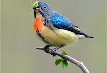 红胸啄花鸟:体重5-10克,体长60-92毫米。体形纤小。雄鸟上体呈辉亮的金属绿色;下体棕黄,胸部具一朱红色块斑,极易与其他啄花鸟区别。雌鸟上体呈橄榄绿,下体棕黄色。虹膜褐色,嘴褐黑色或角灰色,…全部>>