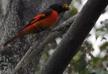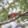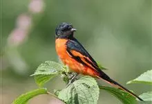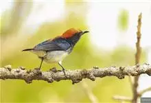 朱背啄花鸟:体重6-8克,体长81-97毫米。是一种小型的黑色及红色啄花鸟。雄鸟顶冠、背及腰猩红色,两翼、头侧及尾黑,两胁灰,下体余部白色。雌鸟上体橄榄色,腰及尾上覆羽猩红,尾黑。亚成鸟清灰色,嘴橘黄,…全部>>
