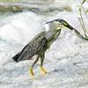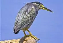 绿鹭:是鹳形目鹭科绿鹭属鸟类。体型小,头顶黑,枕冠亦黑色,上体蝉灰绿色,下体两侧银灰色;前额至后枕及冠羽墨绿色,眼后有一白斑,颊纹黑色;颚纹白色,后颈、颈侧和体侧烟灰色;背部披灰绿色矛状长羽,…全部>>