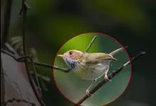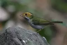 棕脸鹟莺:体长10厘米,是一种色彩亮丽而有特色的莺鸟。头栗色,具黑色侧冠纹。上体绿,腰黄色。下体白,颏及喉杂黑色点斑,上胸沾黄。与栗头鹟莺的区别在头侧栗色,白色眼圈不显著且无翼斑。…全部>>