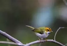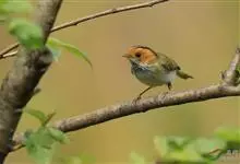 棕脸鹟莺:体长10厘米,是一种色彩亮丽而有特色的莺鸟。头栗色,具黑色侧冠纹。上体绿,腰黄色。下体白,颏及喉杂黑色点斑,上胸沾黄。与栗头鹟莺的区别在头侧栗色,白色眼圈不显著且无翼斑。…全部>>