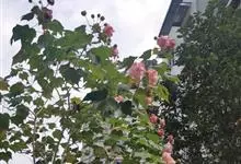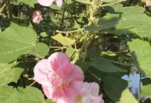木芙蓉,锦葵科木槿属落叶灌木或小乔木。小枝上有细绒毛;叶片为卵状心形,托叶为披针形,常早落;花单生,花萼为钟形,花冠初为白色或淡红色,后逐渐变为深红色;果实为扁球形,有淡黄色的毛附着。花期8到10月。…全部>>