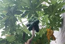 番木瓜,番木瓜科番木瓜属的常绿软木质小乔木,高达10米,具有乳汁;茎不分枝或有时于损伤处分枝;叶大且聚生于茎顶,近似盾形,叶柄中空;花单性或两性,有些品种雄株偶尔生两性花或雌花,…全部>>