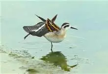 瓣蹼鷸 鸻形目瓣蹼鷸科3种滨鸟。雌鸟的体型比雄鸟大,色也更靓丽,又能进行占区争斗和作求偶表态。雄鸟则负担孵卵任务。入秋雌鸟先离开繁殖地后,随后雄鸟带领幼鸟向南迁飞。…全部>>
