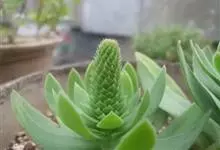 钝叶瓦松 J. M. H. Shaw)是景天科,八宝属二年生肉质草本植物。钝叶瓦松属于轴根型植物,茎生叶互生,花序紧密,苞片匙状卵形,花常无梗;萼片长圆形,花瓣白色或带绿色,长圆形至卵状长圆形,…全部>>