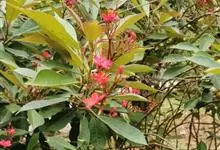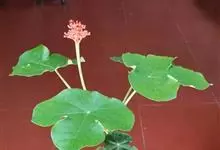 变叶珊瑚花,是大戟科麻风树属常绿灌木。变叶珊瑚花单叶互生,倒阔披针形,叶面为浓绿色,叶背为紫绿色,叶柄具茸毛,叶面平滑,常丛生于枝条顶端;花单性,雌雄同株,花冠红色或粉红色,雌、雄花不同时开放;具乳汁,…全部>>