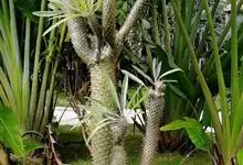 白马城在幼龄株时茎干上粗下细,表皮银白色,叶簇生茎端似伞一般张开,非常迷人。…全部>>