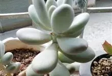 星美人是景天科、厚叶莲属多年生多浆肉质草本植物。植株具直立的短茎。叶12-20片互生,排列呈延长的莲座状,肉质,倒卵形,长2-4厘米,宽2-2.5厘米,厚2厘米,先端平滑钝圆,…全部>>
