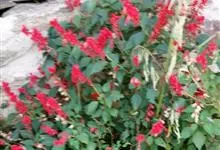 一串红,又称爆仗红、象牙红,为唇形科鼠尾草属植物。花序修长,色红鲜艳,花期又长,适应性强,为中国城市和园林中最普遍栽培的草本花卉。原产巴西、南美洲。喜温暖和阳光充足环境。不耐寒,耐半阴,忌霜雪和高温,…全部>>