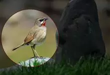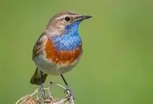 蓝点颏亦称“蓝喉歌鸲”,通称蓝靛颏儿。身体大小和麻雀相似,体长12-13厘米,体重17-18克。头部、上体主要为土褐色。眉纹白色。尾羽黑褐色,基部栗红色。颏部、喉部辉蓝色,下面有黑色横纹。下体白色。…全部>>