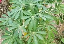 木薯,为大戟科木薯属的一种直立灌木,又名木番薯、树薯。木薯高1.5-3米;块根圆柱状。叶纸质,轮廓近圆形;裂片倒披针形至狭椭圆形;托叶三角状披针形。圆锥花序顶生或腋生,花萼带紫红色且有白粉霜。…全部>>