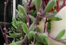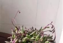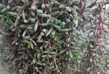 紫玄月是菊科厚敦菊属多年生肉质草本植物。蔓长30-60厘米;茎紫色;叶对生或互生茎上肉质,叶片细圆柱形,中间粗两端细稍弯曲;花序着生于叶腋,头状花序,舌状花黄色,管状花黄色;花期全年。…全部>>