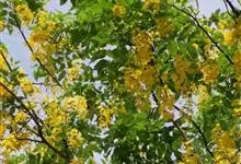 腊肠树:是豆科腊肠树属植物。落叶乔木,高可达15米;枝细长;树皮灰色,老时粗糙,暗褐色。叶长30-40厘米,小叶对生,薄革质,阔卵形,卵形或长圆形,边全缘,幼嫩时两面被微柔毛,老时无毛;叶脉纤细,…全部>>
