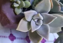 胧月 E.Walther)是景天科,风车草属多肉植物,常绿蔓生亚灌木,叶肥厚无柄,灰蓝色,阳光充足时呈粉红色,叶片枝顶簇生成莲座状,乳白色,花冠5裂,上有紫红色斑点,雄蕊两轮排列,花药鲜红色,…全部>>