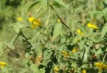 单毛刺蒴麻,一年生草本或半灌木,叶纸质,卵形或卵状披针形,先端尾状渐尖,基部圆形或微心形,两面有稀疏单长毛,基出脉3-5条。聚伞花序腋生,花序柄极短,花瓣比萼片稍短,黄色。蒴果扁球形,无毛,具刺,刺…全部>>