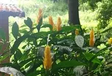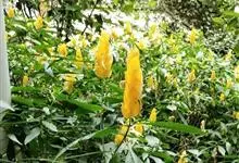 金苞花是爵床科、金苞花属的常绿草本植物。叶长圆形或披针形,先端渐尖,基部通常楔形,下面主脉被微柔毛;顶生穗状花序由密、短的总花梗组成,卵形苞片膜质,下部的近心形,小苞片披针形或匙形,与花萼等长,…全部>>