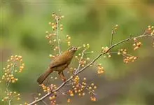 画眉,是雀形目噪鹛属一种鸣禽,别名为文武鸟、金画眉。成年画眉体长为21~25cm,体重为49~75g,眼周具一圈白色羽毛,并向眼后延伸形成一条显著的白色眉纹;上体覆羽呈卡其色,飞羽为暗褐色,…全部>>
