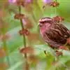 红眉朱雀:体长15厘米,是一种中等体型的朱雀。上体褐色斑驳,眉纹、脸颊、胸及腰淡紫粉,臀近白。雌鸟无粉色,但具明显的皮黄色眉纹。雄雌两性均甚似体型较小的曙红朱雀,但嘴较粗厚且尾的比例较长。…全部>>