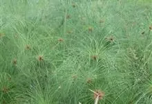 纸莎草是莎草科、莎草属的植物,具有粗壮的根状茎,高达2-3米,茎秆簇生,粗壮,直立,钝三棱形。叶退化呈鞘状,茎秆顶端着生总苞片,呈伞状簇生,总苞片叶状,披针形,顶生花序伞梗极多,细长下垂。瘦果灰褐色,…全部>>