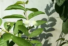 草莓番石榴是番石榴属植物,株高可达2米,树皮平滑,叶对生,倒卵形或椭圆形,先端钝,全缘,厚革质,叶形酷似榕树;花腋生,花冠白色;果实球形或椭圆形,红褐色;在春、夏季开花结果。…全部>>