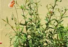 石榴是千屈菜科石榴属落叶灌木或乔木,一般植株高3-5米,少数可达到10米;枝顶常有尖锐长刺,幼枝有棱角但无毛,老枝近圆柱形;叶通常为对生,长圆状披针形;花大,…全部>>