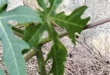 番木瓜,番木瓜科番木瓜属的常绿软木质小乔木,高达10米,具有乳汁;茎不分枝或有时于损伤处分枝;叶大且聚生于茎顶,近似盾形,叶柄中空;花单性或两性,有些品种雄株偶尔生两性花或雌花,…全部>>