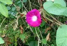 五爪金龙 Sweet),旋花科番薯属多年生缠绕草本植物。茎细长,有细棱;叶片为掌状;花冠紫红色、紫色或淡红色、偶有白色,漏斗状;蒴果近球形。花期5~12月。五爪金龙的叶子类似掌状,有5至7个裂痕,…全部>>