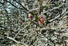 蒙古扁桃 Ricker)是蔷薇科桃属植物,灌木,高1-2米;枝条开展,多分枝,小枝顶端转变成枝刺;嫩枝红褐色,被短柔毛,老时灰褐色。短枝上叶多簇生,长枝上叶常互生;叶片宽椭圆形、近圆形或倒卵形。花单…全部>>