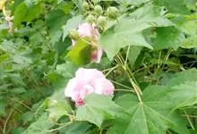 木芙蓉,锦葵科木槿属落叶灌木或小乔木。小枝上有细绒毛;叶片为卵状心形,托叶为披针形,常早落;花单生,花萼为钟形,花冠初为白色或淡红色,后逐渐变为深红色;果实为扁球形,有淡黄色的毛附着。花期8到10月。…全部>>
