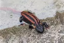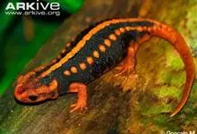 大凉疣螈雄性全长18.6~22㎝,雌性19.4~23㎝。头部扁平,头长略大于头宽,吻端平切而较高,近于方型。尾基部较宽,后段甚侧扁,尾背鳍褶薄,腹鳍褶厚,尾末端钝尖。体尾褐黑色或黑色,…全部>>