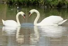 疣鼻天鹅:是鸟纲、鸭科、天鹅属的一种大型的游禽,体长1.2-1.5米,体重6.75-10千克。脖颈细长,前额有一块瘤疣的突起,因此得名。全身羽毛洁白。在水中游泳时,颈部弯曲而略似“S“形。…全部>>