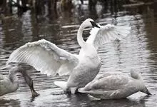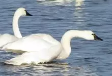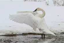 小天鹅为大型水禽,体长110~130厘米,体重4~7千克,雌鸟略小。它与大天鹅在体形上非常相似,同样是长长的脖颈,纯白的羽毛,黑色的脚和蹼,身体也只是稍稍小一些,颈部和嘴比大天鹅略短,但很难分辩。最…全部>>