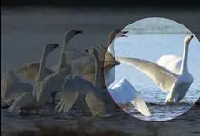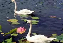 扁嘴天鹅:体长90-115厘米,体羽白色,羽端黑色,在飞行时则很明显。雁喙和脚红色。栖息于茂密的沼泽及湖泊,主要吃草及水生植物,也会吃蚌类及鱼类。分布于南美洲,…全部>>