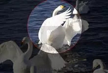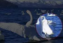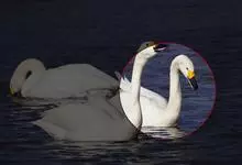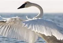 小天鹅为大型水禽,体长110~130厘米,体重4~7千克,雌鸟略小。它与大天鹅在体形上非常相似,同样是长长的脖颈,纯白的羽毛,黑色的脚和蹼,身体也只是稍稍小一些,颈部和嘴比大天鹅略短,但很难分辩。最…全部>>