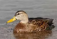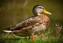 绿头鸭属游禽,大型鸭类。体长47-62厘米,体重大约1千克,外形大小和家鸭相似。雄鸟嘴黄绿色,脚橙黄色,头和颈辉绿色,颈部有一明显的白色领环。上体黑褐色,腰和尾上覆羽黑色,两对中央尾羽亦为黑色,且向…全部>>