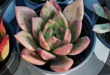 玉杯东云是景天科拟石莲花属的多肉植物,是园艺杂交培育品种,由月影和东云杂交而来,为冬云系品种之一。也有叫冰莓冬云的,叶片颜色很丰富,在温差大的情况下,红边会增多,…全部>>