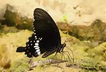 玉斑凤蝶Papilio helenus 别名白纹凤蝶,是凤蝶科凤蝶属美凤蝶亚属大型种类。雌雄同型;体翅皆黑色,后翅正面中室外有3个并列的白色斑,亚外缘有1列模糊的新月形红色斑,…全部>>
