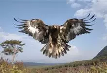 金雕:属于鹰科、雕属的猛禽。体长76-102厘米,翼展达2.3米,体重2-6.5千克。雌雄同色。未成年时,头、颈黄棕色;两翼飞羽除了最外侧三枚外基部均缀有白色,其余身体部分暗褐色;羽尾灰白色,…全部>>