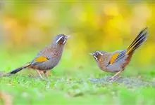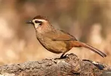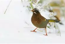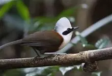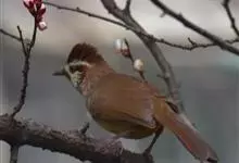 白颊噪鹛是雀形目噪鹛科噪鹛属鸟类,又称土画眉、小画眉、小噪鹃。成鸟额至头顶栗褐色,长眉纹、眼先和颊纹棕白色,眼后至耳羽深褐色,…全部>>