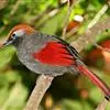 赤尾噪鹛中型鸟类,体长24~28厘米。头顶至后颈红棕色,两翅和尾鲜红色,眼先、眉纹、颊、颏和喉黑色,眼后有一灰色块斑。其余上下体羽大都暗灰或橄榄灰色。特征极明显,特别是通过鲜红色的头顶、翅和尾。…全部>>