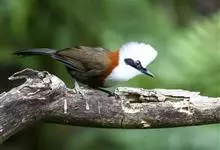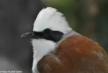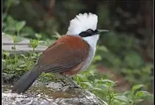白冠噪鹛是画眉科噪鹛属的鸟类。是中型鸟类,体长28-32厘米。常见于常绿阔叶林、杂有竹丛的树林以及林下灌丛。该物种的模式产地在喜马拉雅山脉西部。主要以金龟甲、步行虫、甲虫、蝉、鳞翅目幼虫等昆虫为食,…全部>>