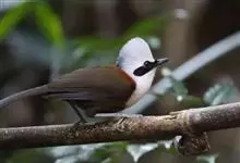 白冠噪鹛是画眉科噪鹛属的鸟类。是中型鸟类,体长28-32厘米。常见于常绿阔叶林、杂有竹丛的树林以及林下灌丛。该物种的模式产地在喜马拉雅山脉西部。主要以金龟甲、步行虫、甲虫、蝉、鳞翅目幼虫等昆虫为食,…全部>>