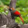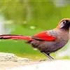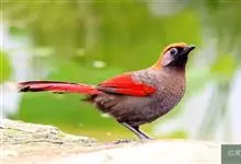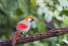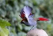 赤尾噪鹛中型鸟类,体长24~28厘米。头顶至后颈红棕色,两翅和尾鲜红色,眼先、眉纹、颊、颏和喉黑色,眼后有一灰色块斑。其余上下体羽大都暗灰或橄榄灰色。特征极明显,特别是通过鲜红色的头顶、翅和尾。…全部>>