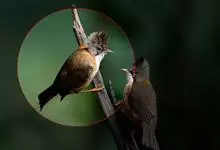 白喉冠鹎:体长20-25厘米。头顶红褐色,有长而细的羽冠、红褐色,头侧灰色。上体橄榄绿黄色,飞羽暗褐色,外翈茶黄色,尾下覆羽皮黄色。…全部>>